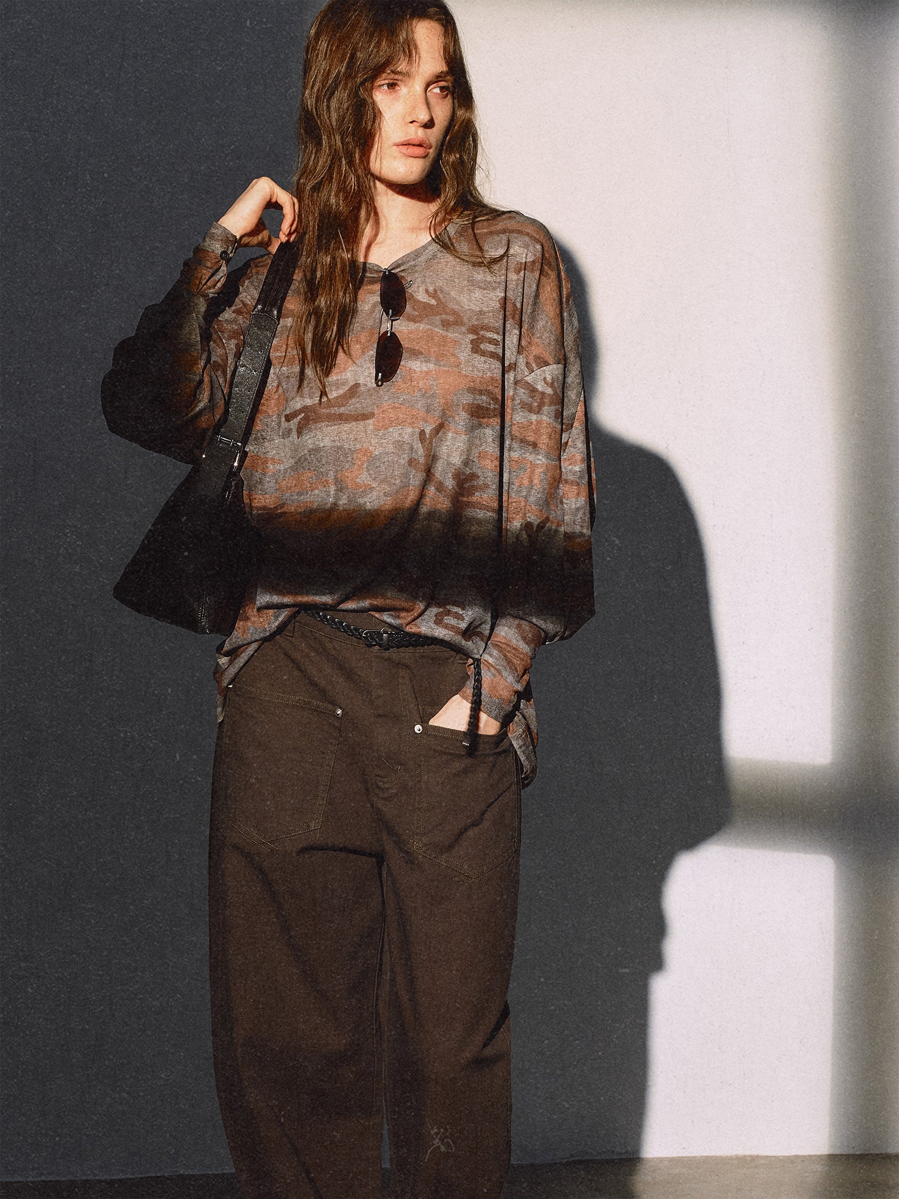 - Low-saturation camouflage print pattern, fashionable and versatile
